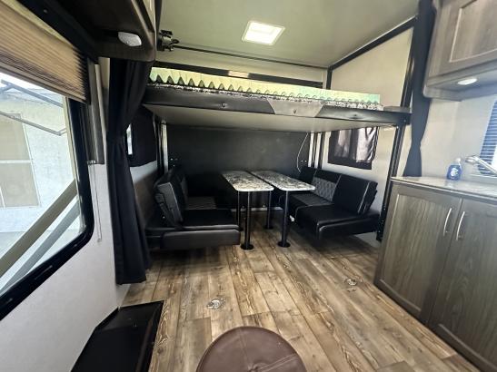 The Vortex Premium Toy Hauler blends rugged functionality with modern comfort — built for guests who want to bring their adventure with them. Whether you’re heading into the desert for off-roading, exploring backcountry trails, or boondocking under the stars, this higher-end hauler gives you the best of both worlds: space for your gear and a comfortable home base for family and friends.